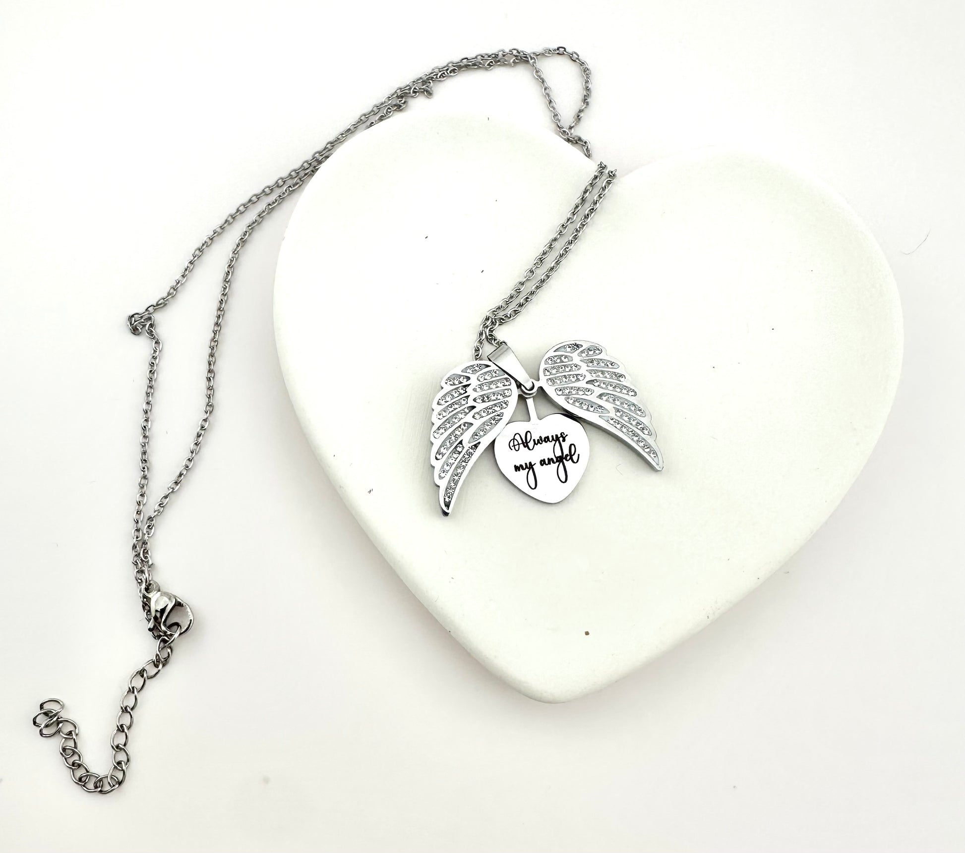 Angel Wings Hidden Heart Necklace – “Always My Angel” Memorial Gift