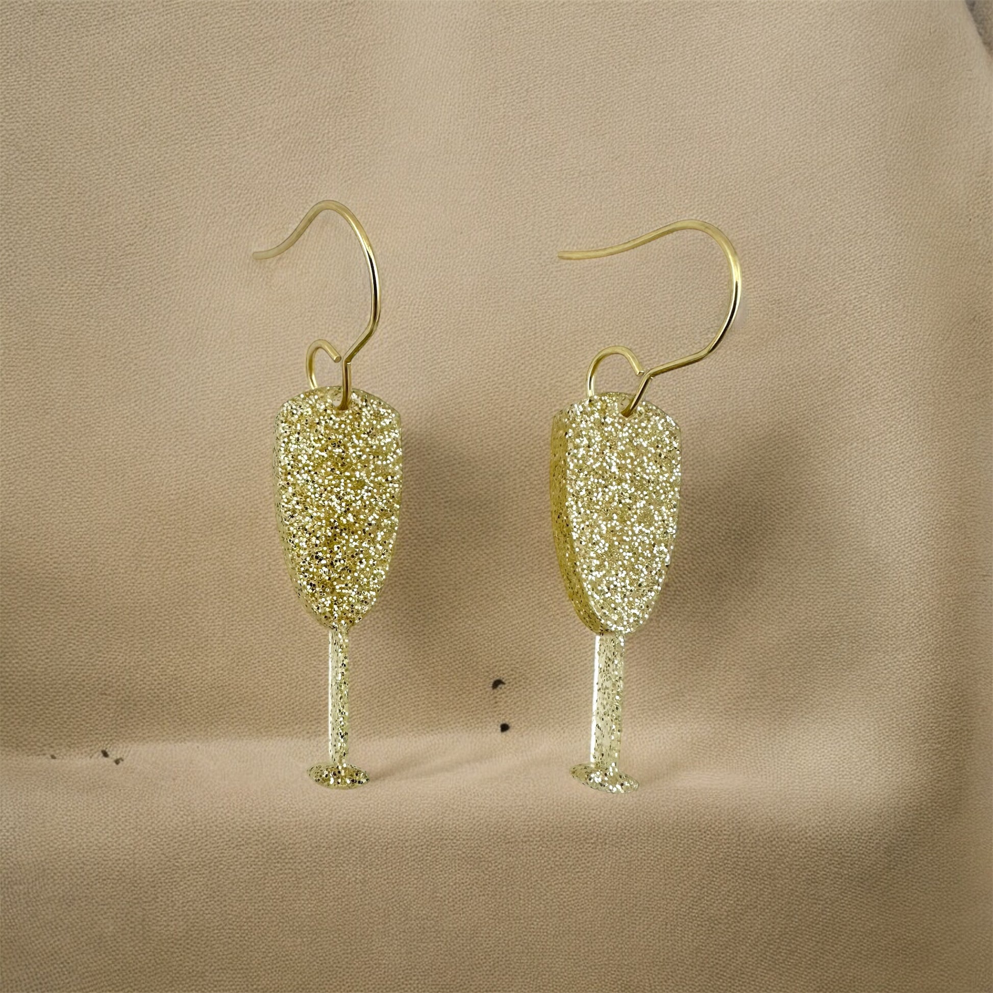 These glittery gold champagne glass earrings are the perfect finishing touch for celebrations, parties, and nights worth remembering. Lightweight and eye-catching, they add just the right amount of sparkle without weighing you down.