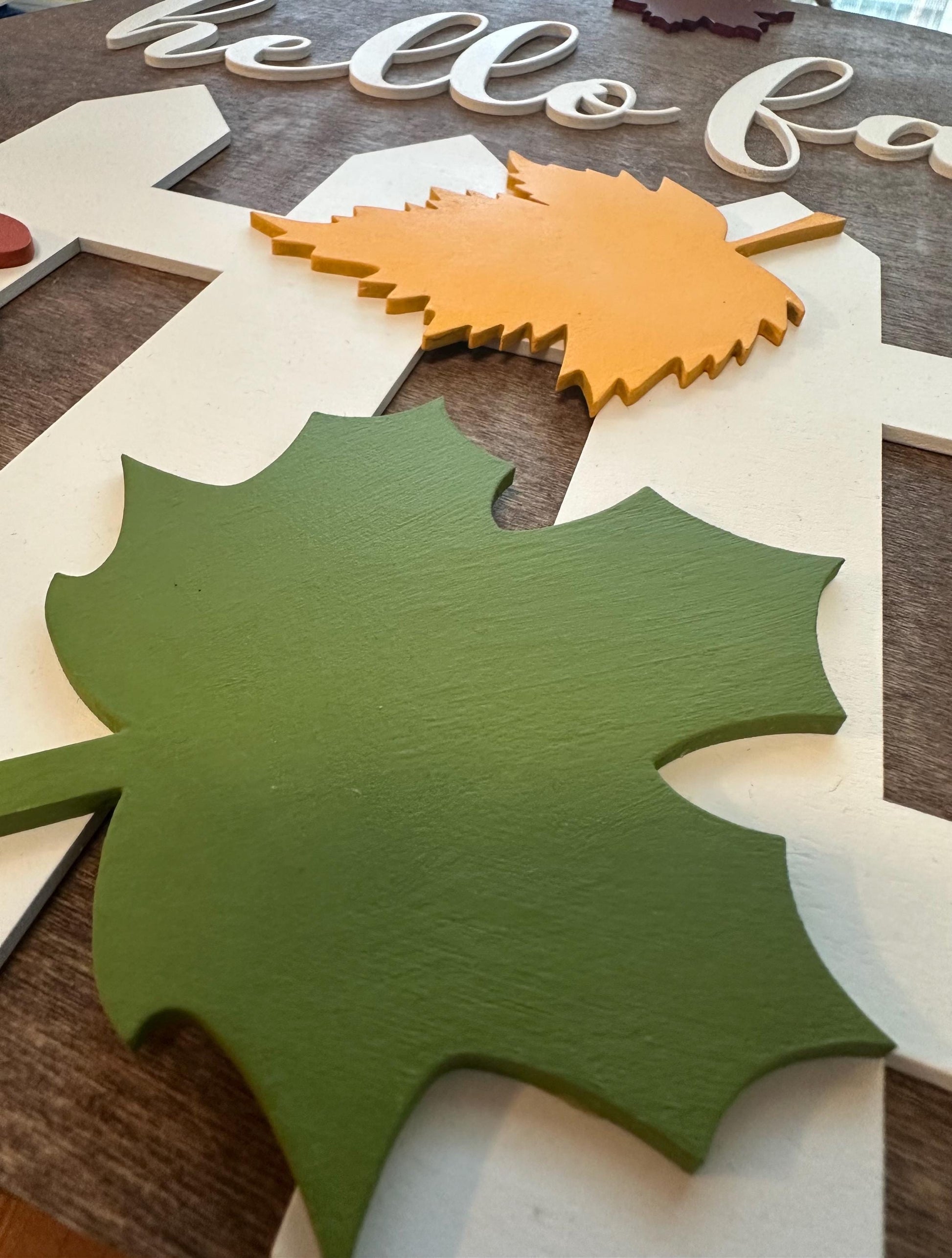 Welcome autumn in style with this 16-inch hand-painted “Hello Fall” wood door hanger! 🍁