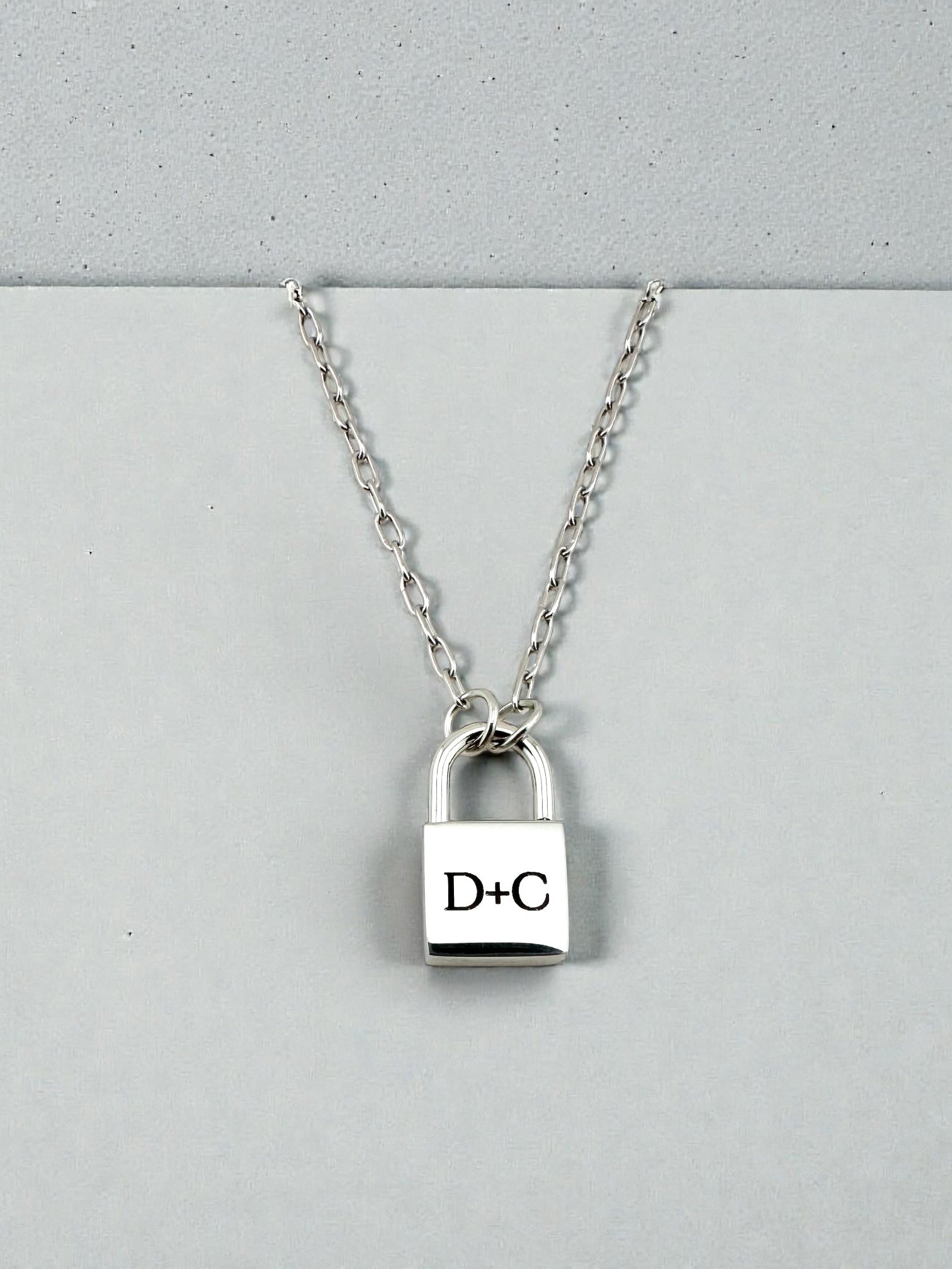 Engraved Padlock Necklace – personalized with initials (example shown: D + C)